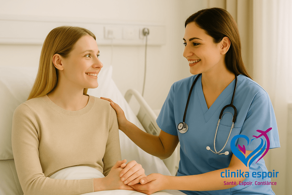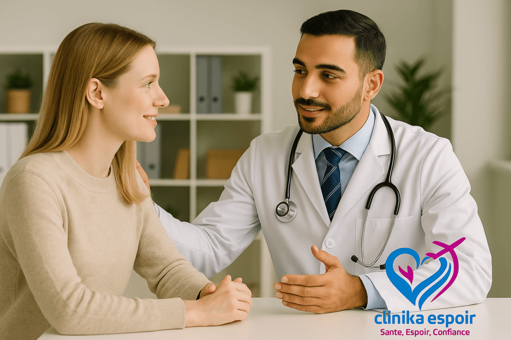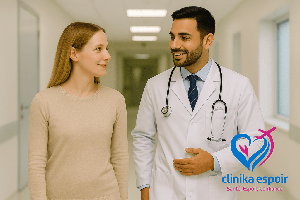 Avec Clinika Espoir, vous bénéficiez d’un accompagnement médical complet, d’une prise en charge sécurisée, et d’un encadrement professionnel à chaque étape de votre séjour médical au Maroc. Que ce soit pour une chirurgie esthétique, une chirurgie de l’obésité, ou une FIV au Maroc, notre équipe veille à ce que votre parcours médical personnalisé soit à la fois efficace, humain et hautement sécurisé.